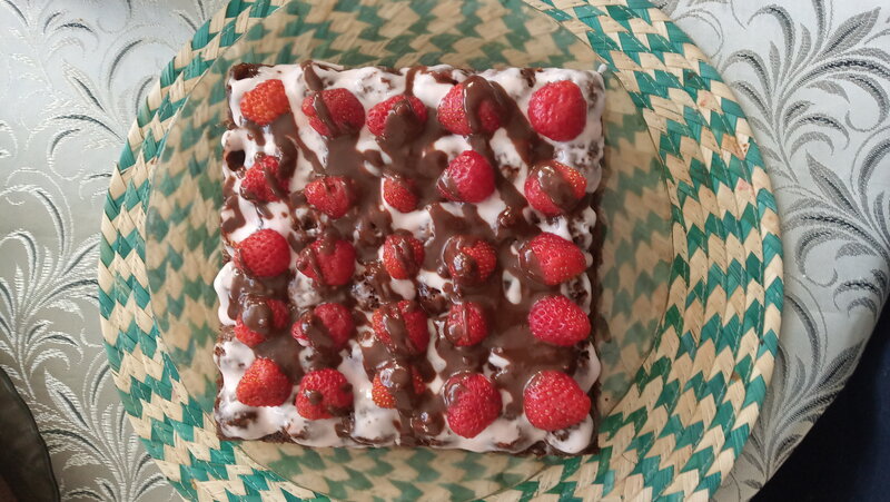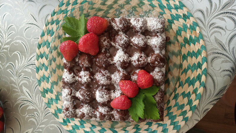 Шоколадный бисквит с йогуртовым кремом с клубникой, клубникой и шоколадом 😋