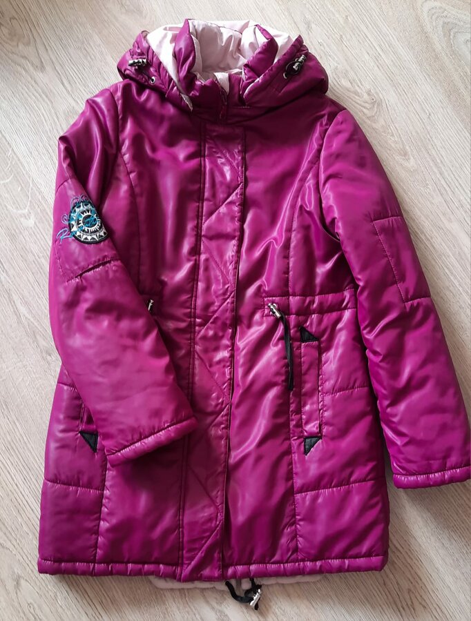 рр указан 11-12. На рост 146 как раз. Мы такие в 9 лет. Куртка целая, но после изо несла картину и всю куртку испачкала зеленой краской. После стирки остались еле заметные пятна. Может кому на сменку или для прогулок. На теплую зиму. Холодную весну осень отлично. Цена 300