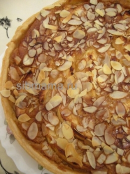 Выкладываем сверху яблочной начинки миндаль,белковый крем.