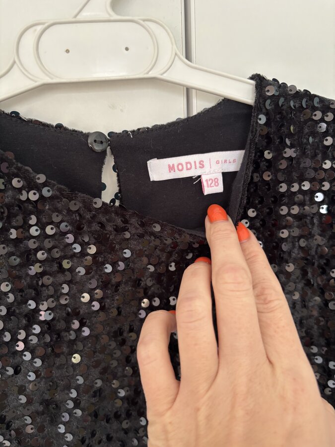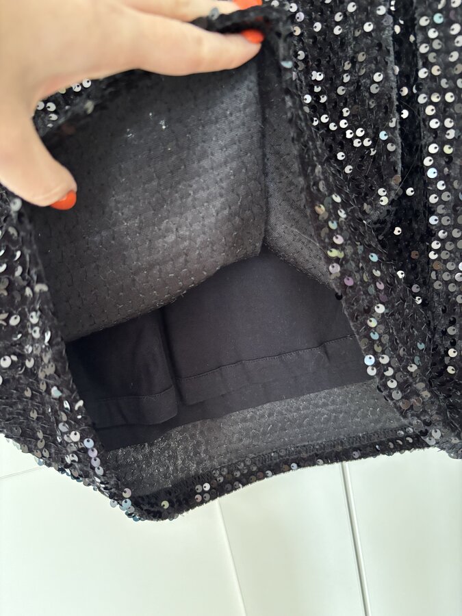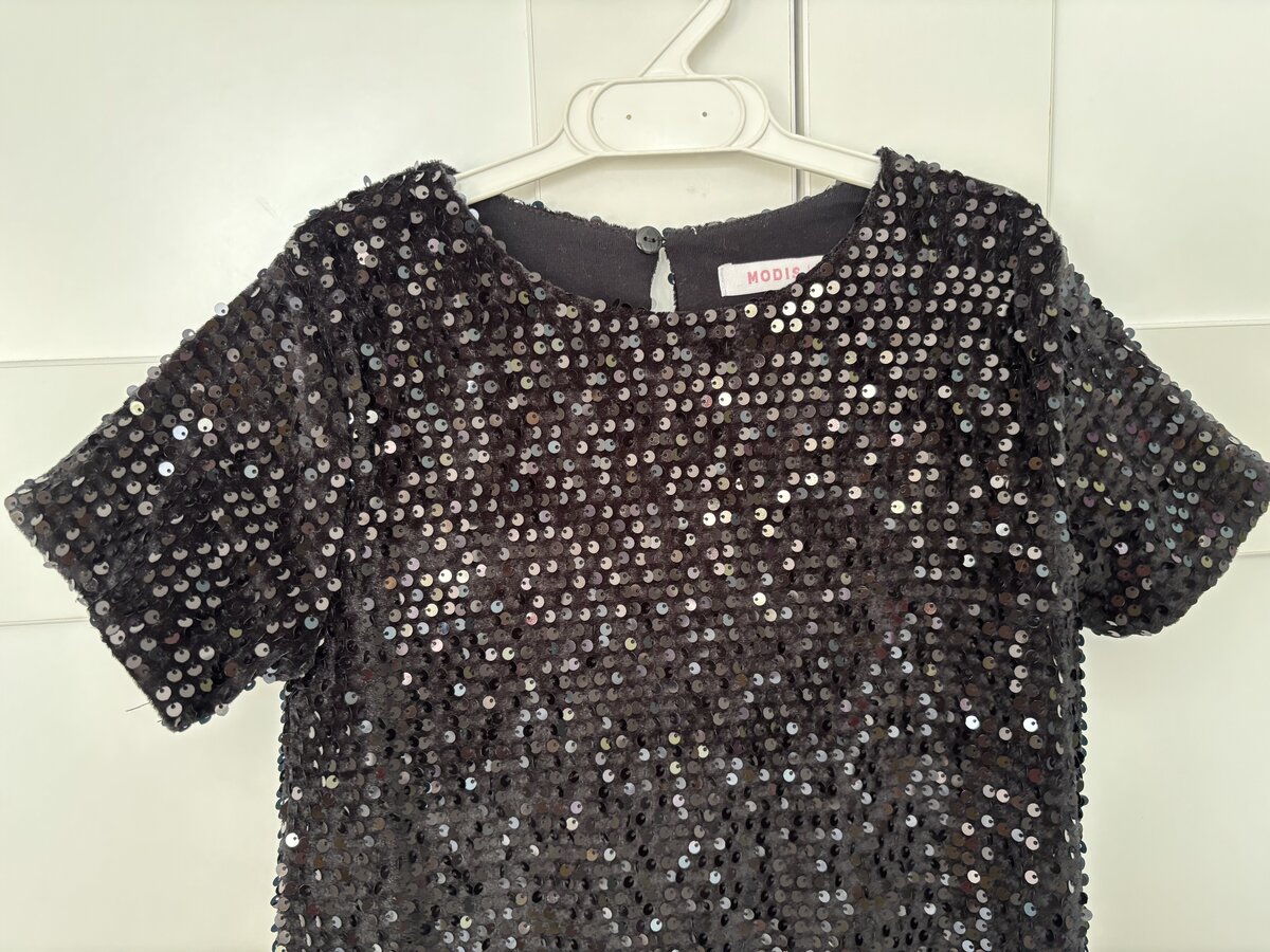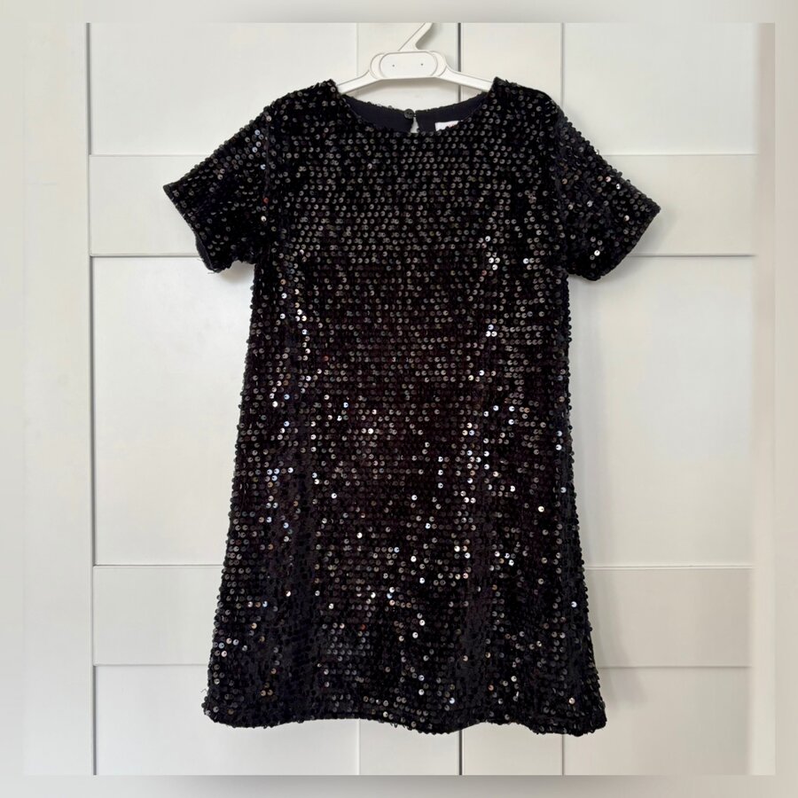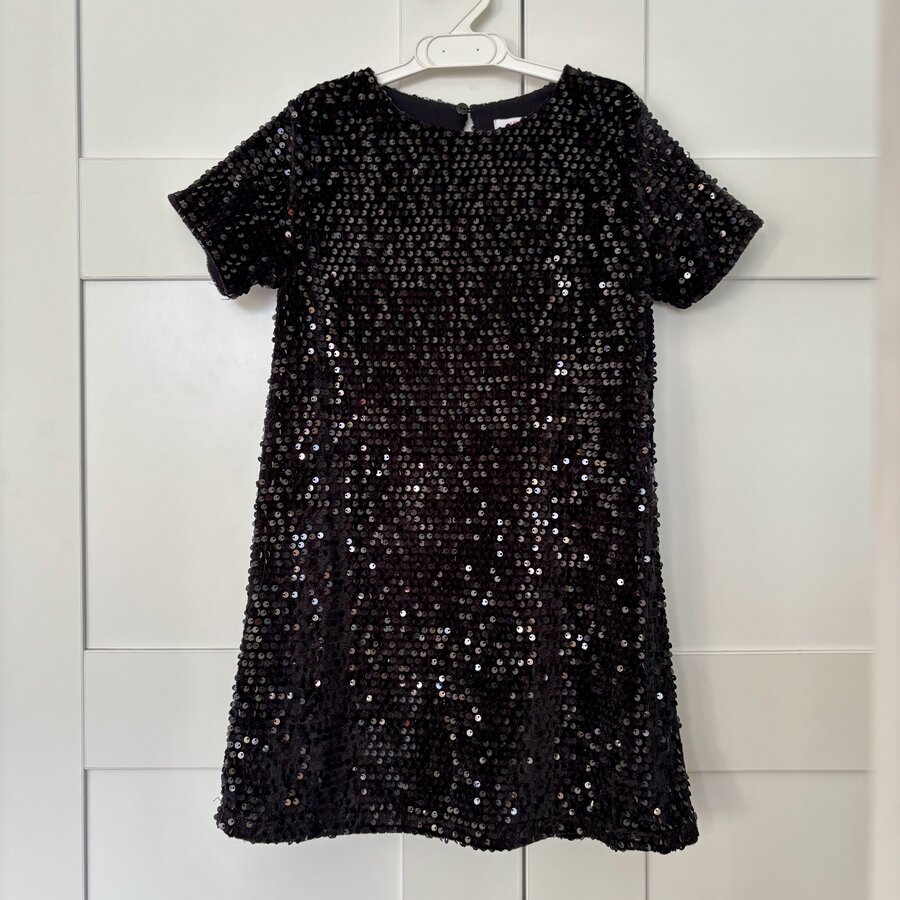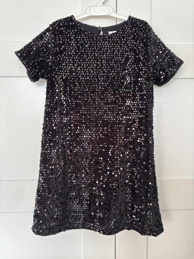 Нарядное черное мини-платье с пайетками, размер 128, 800 руб.