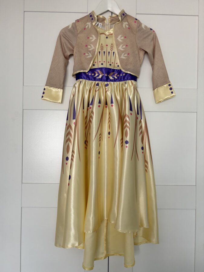 На 7-9 лет примерно. Очень яркий и реалистичный. Надевался один раз.