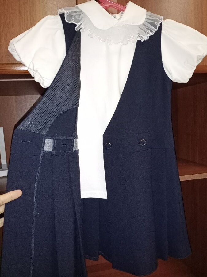 Школьный сарафан Самм 128 размер. Есть катышки на синей части и след клея от шеврон. Цена 300р. Кольцово, Н. Ельцовка.