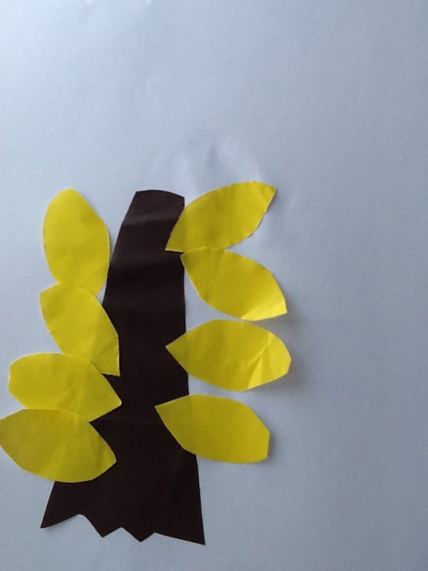1. Показываем настоящую березу. Находим у нее зеленые и желтые листья.