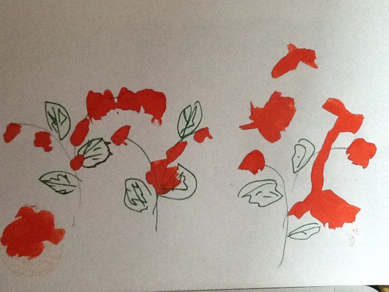 3. Давай рисовать зеленые листочки. Даем баночку с гуашью, толстую кисточку, лучше жесткую. Показываем, как рисовать листочки.