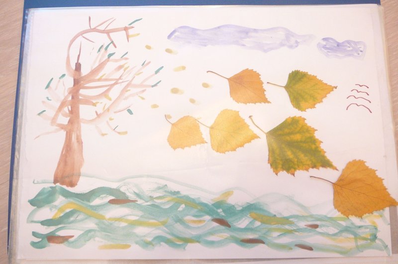 Альбомный лист, краски, листики на улице их сейчас очень много