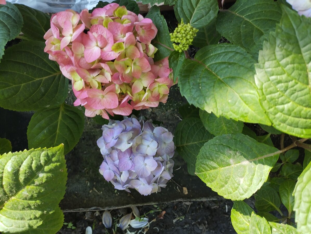 В прошлом году купила голубую гортензию. И она действительно была голубой. Но в этом году она вот такая