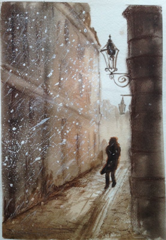 Зимний пейзаж - с курса АкварельПро у Калачевой - "Городской пейзаж в ограниченной гамме".