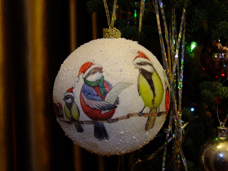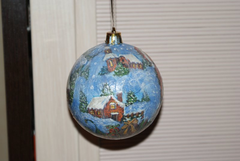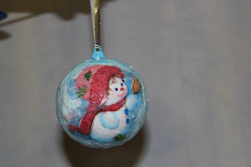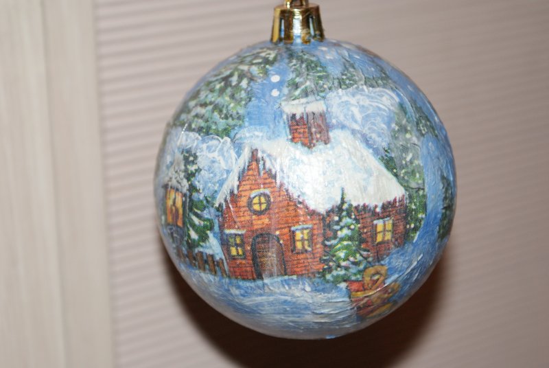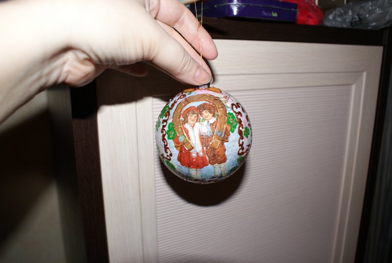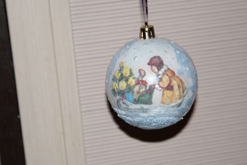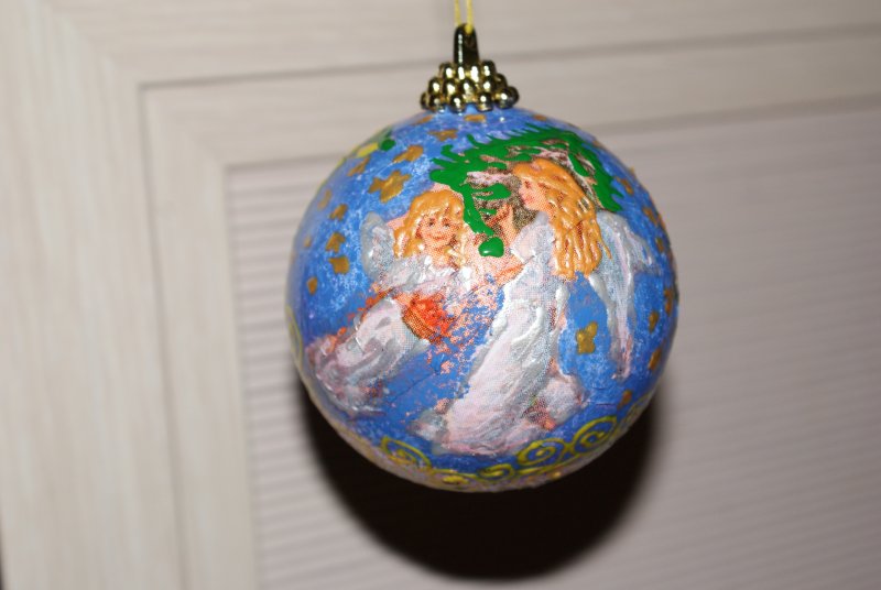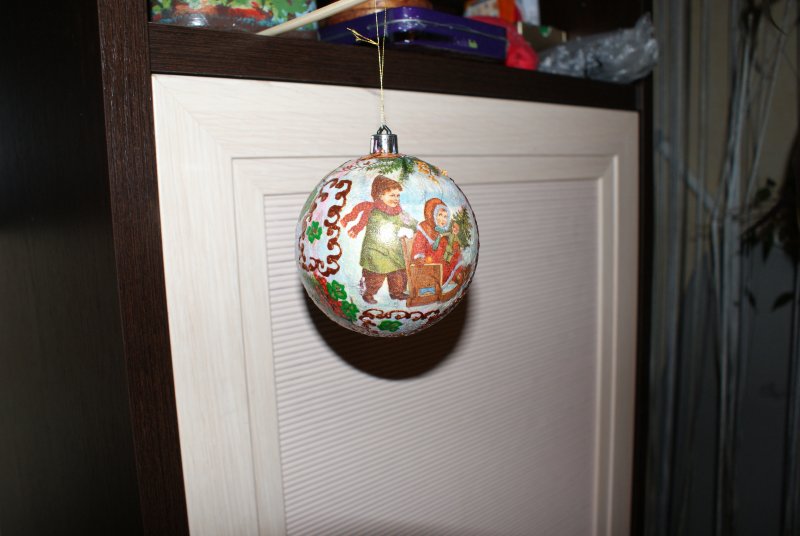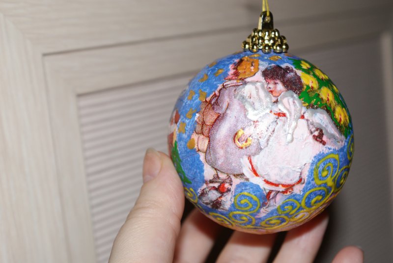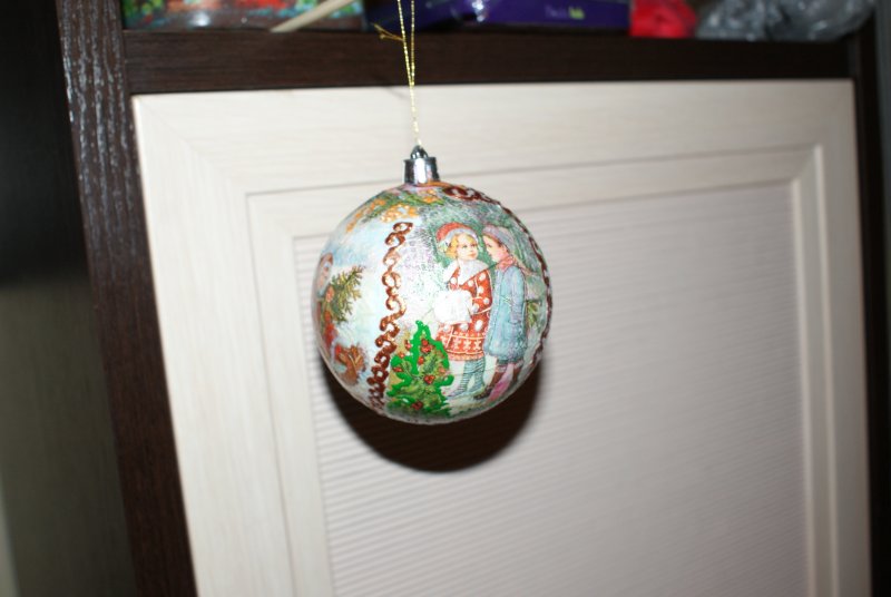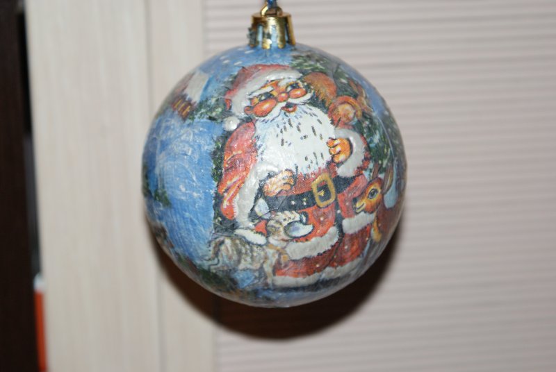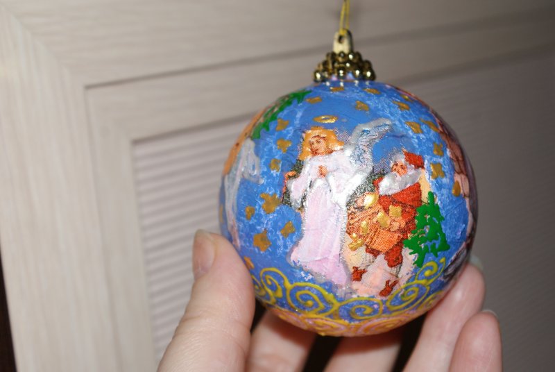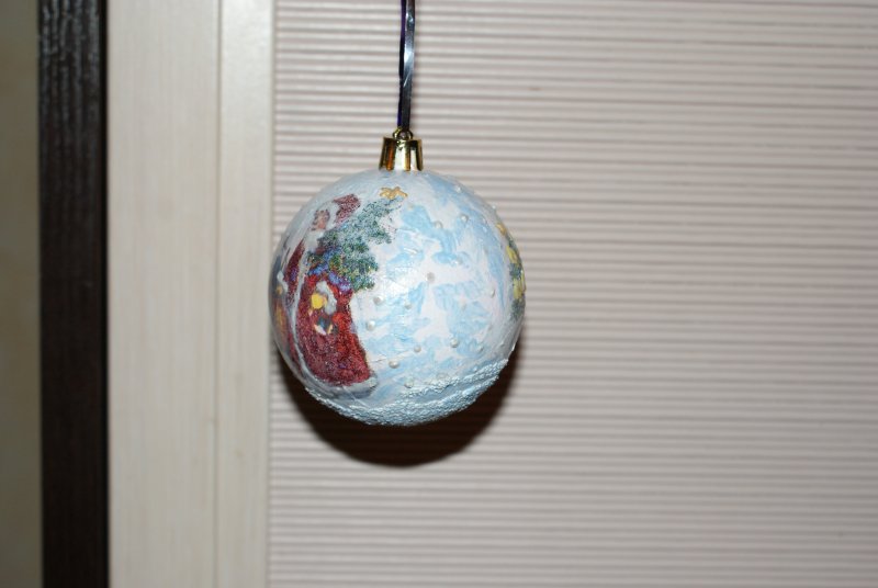 Зато доча старшая 2 шарика свояла, до этого только на свечах декупаж делала. Фото есть только одного,второй намного лучше получился (она оба преподавателям подарила).