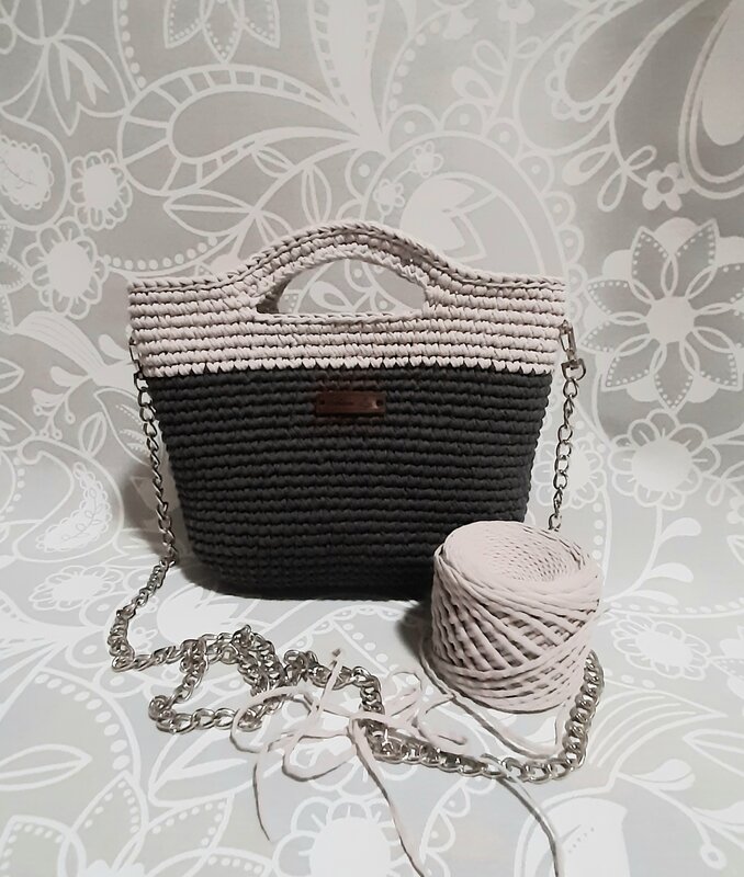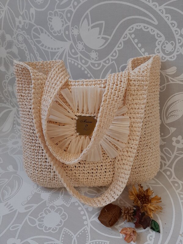 Обе связаны крючком. Одна из трикотажной пряжи fergy, а вторая из рафии Ispie