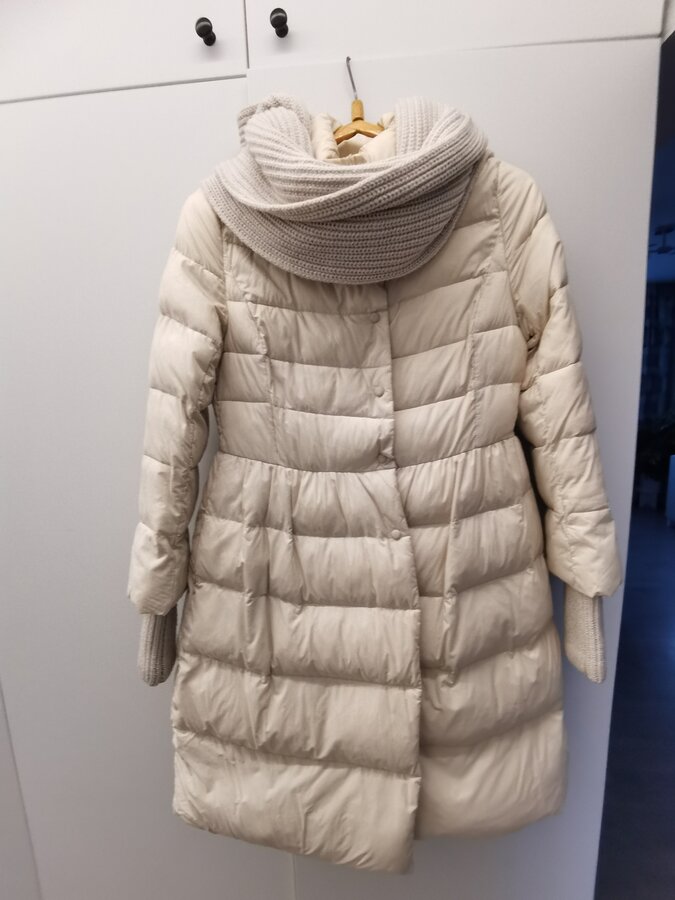 куртка класна, моя любимая в свое время, очень нежная и женственная, расклёшенная, шарф хомут в комплекте, рр указан С, на 42-44 и высокий рост хорошо. Цена 1000