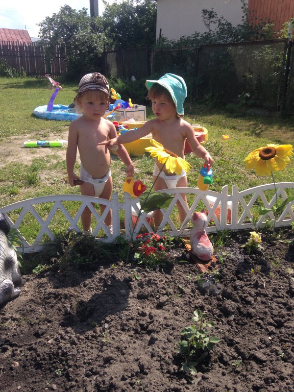 Это мои доченьки-двойняшки ухаживают за своим цветником 🌻🌸🌹