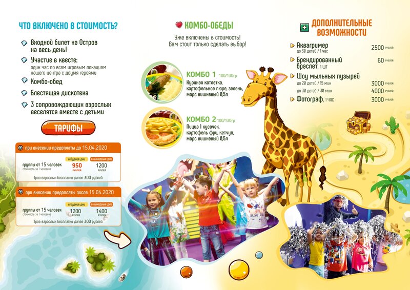 прыгать на батутах! Это и многое другое взрослые делают на Острове наравне с детьми.