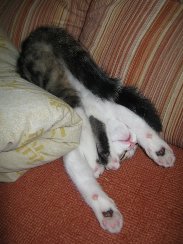 Цитата: Моя животинка вот так спит : вылизывалась-вылизывалась да так и заснула с ногой на голове
