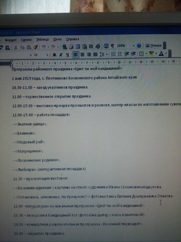 1 мая,в с. Плотниково Косих района, с 11:00 впервые будет праздник цветения,кандыка, т к. За селом есть "Кандышный лог" - весной пркрытый фиолетовым ковром цветов