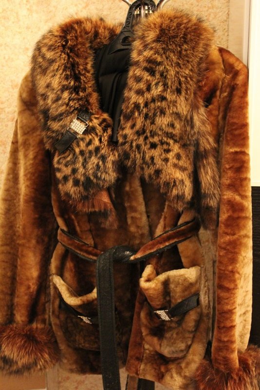 3. Шуба мутоновая, до середины бедра, местами вытертая, для носки непригодна, только если темной ночью с собакой, или на поделки, но с очень хорошим воротником - 1000 р
