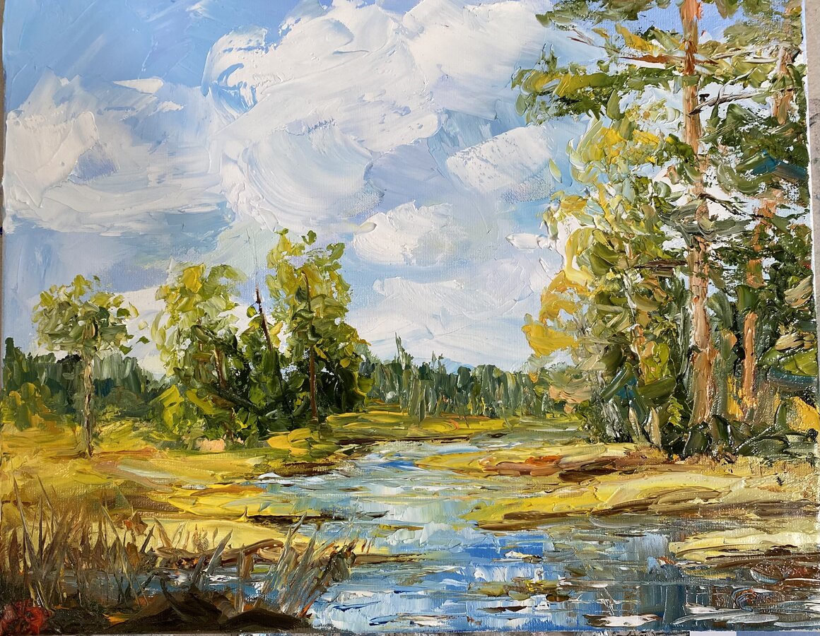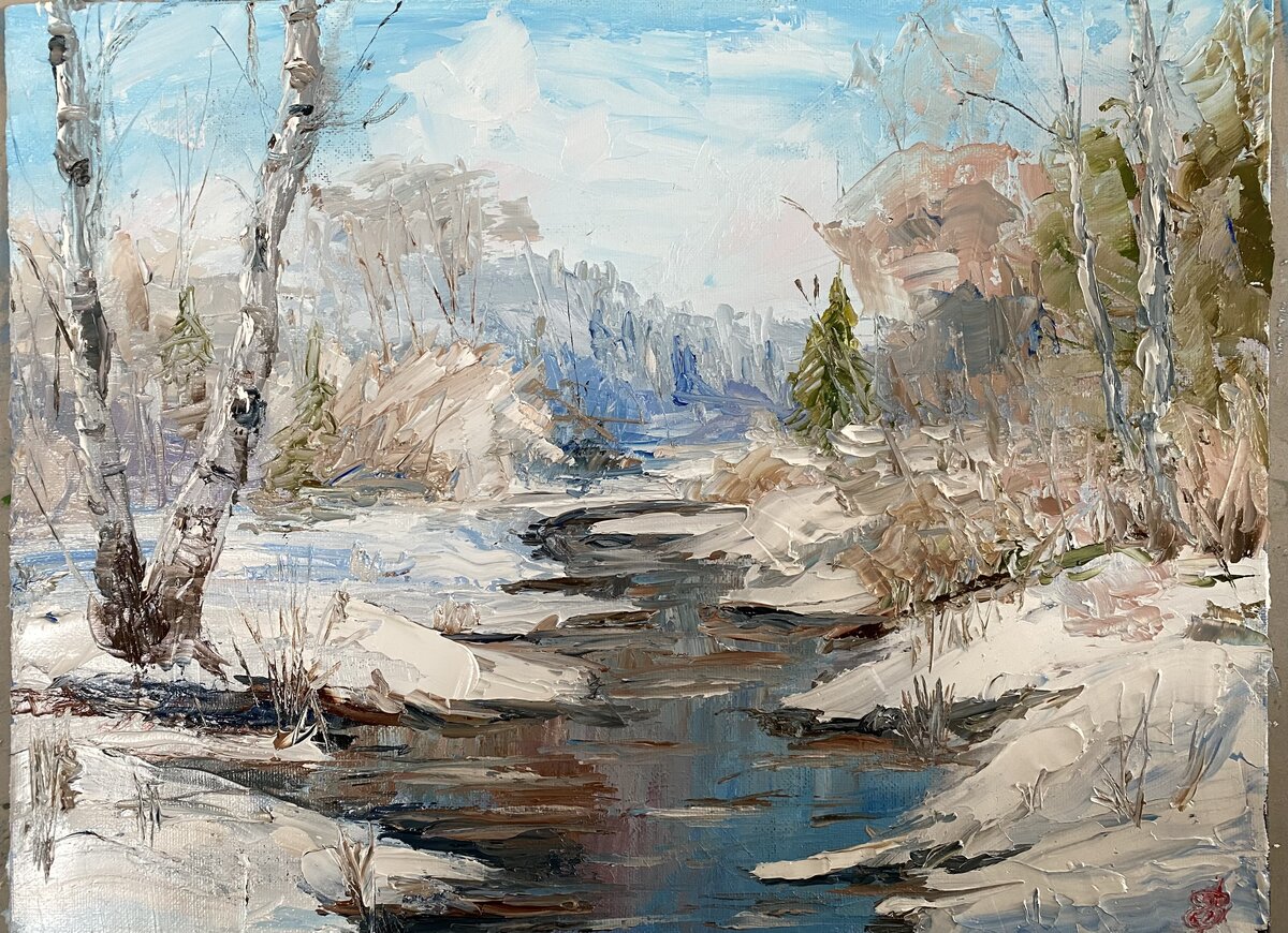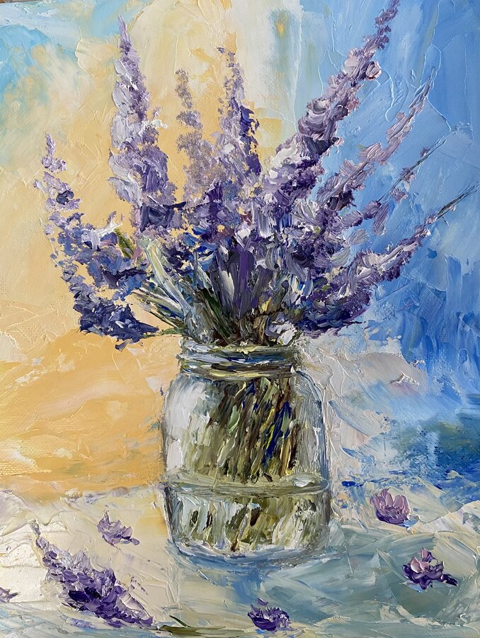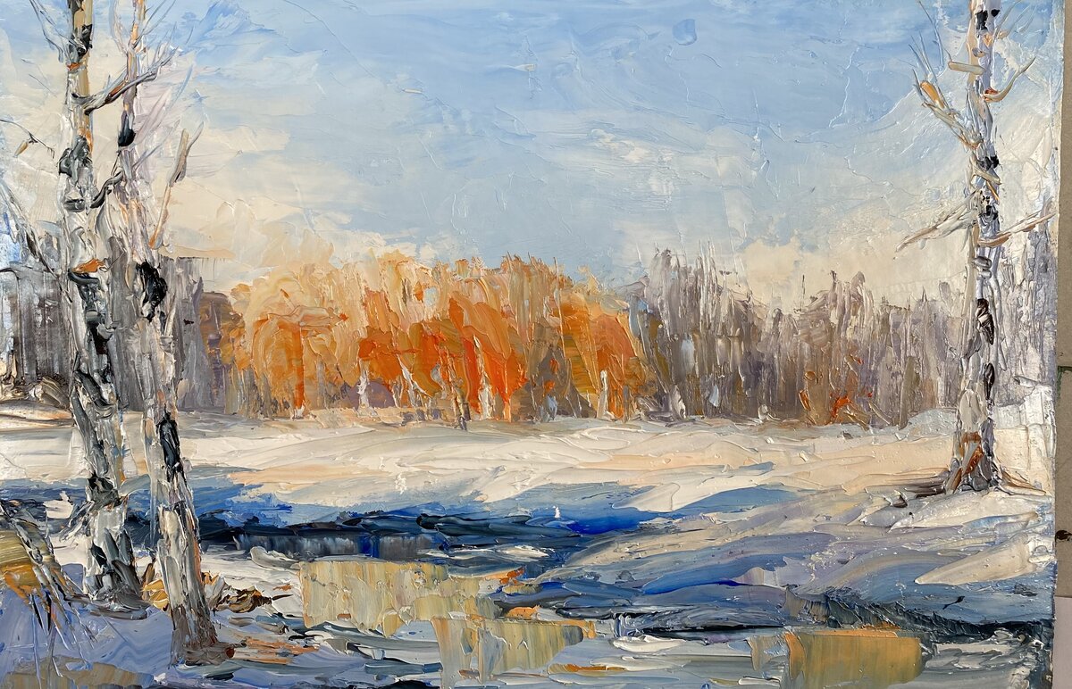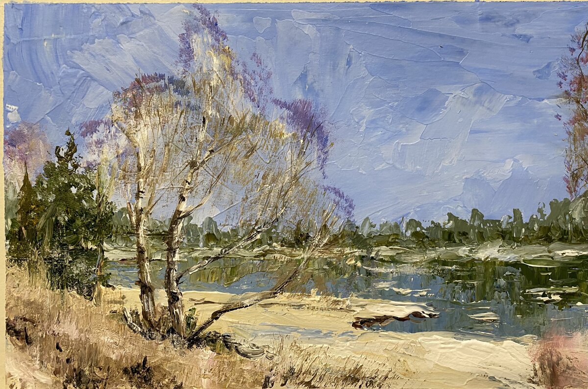 Вот сейчас осваиваю работу мастихином. Очень интересная техника, даёт смелость в работе. Пока не все получается, как хочется и видится. Но буду продолжать. :yes: