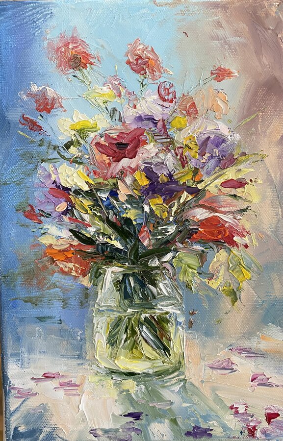 Про букет - на каком формате ты рисуешь? Это же все мастихином, да? Красота прямо. Смелость!