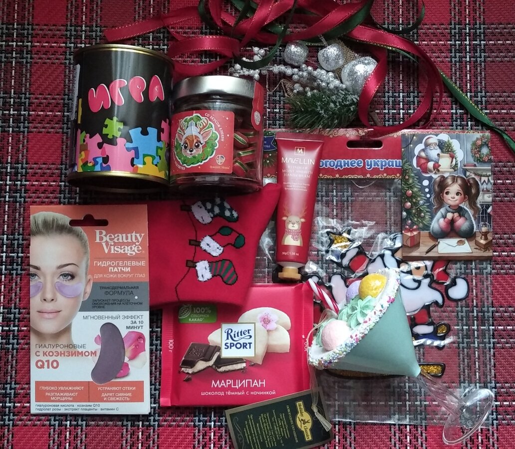 Открыла вчера свой подарочек Дедушки Мороза! Спасибо большое! Все очень понравилось и нужности, и сладости,и новогодние украшения!Я очень довольна