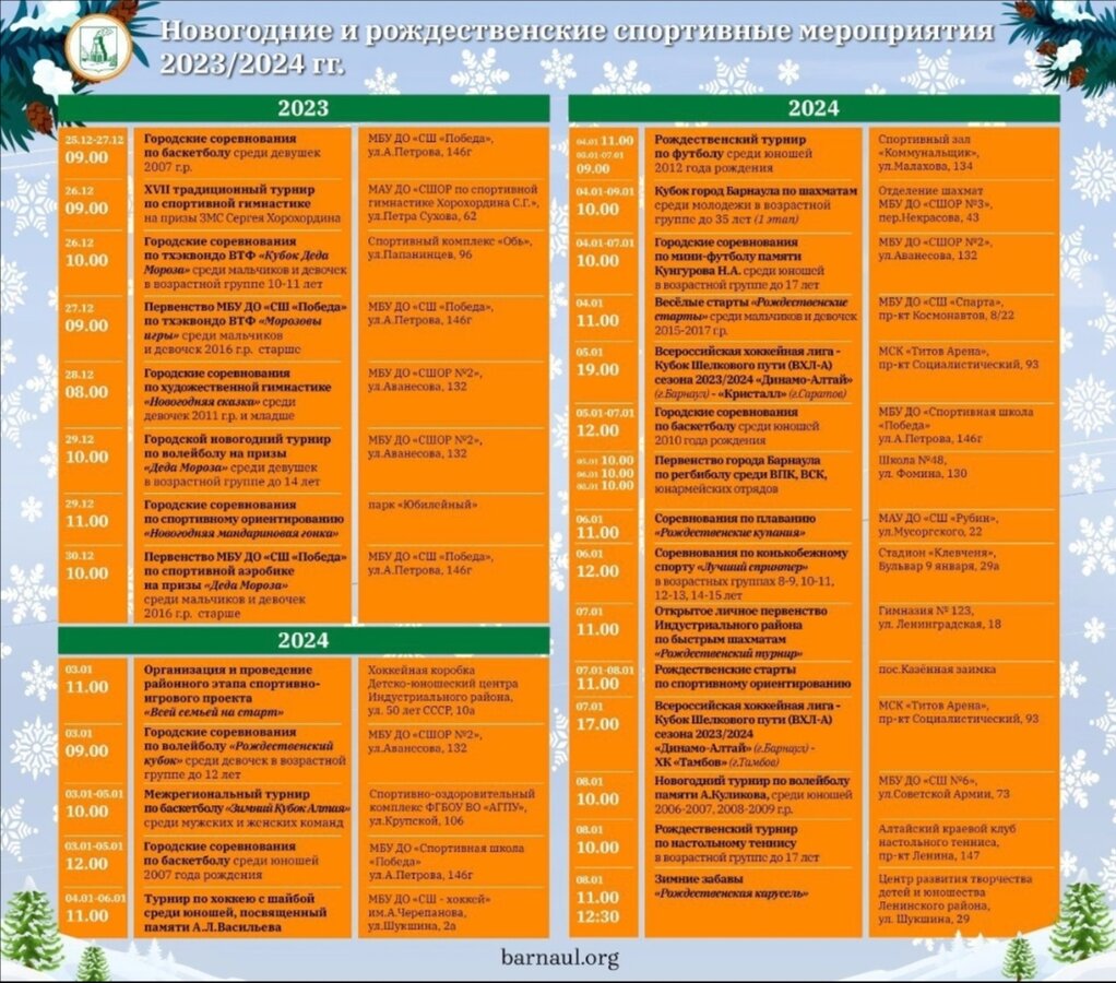 В новогодние и рождественские праздники на территории города Барнаула пройдут многочисленные спортивные мероприятия.