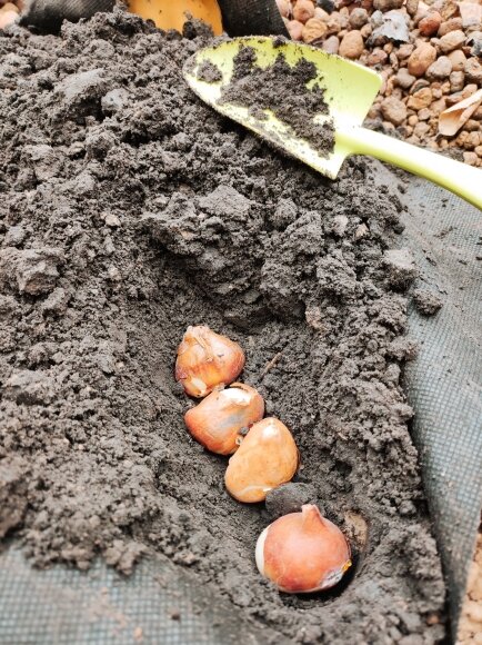Заодно закопала луковицы тюльпанов. Кажется, они были куплены на какой-то распродаже и вот пришел их черед: