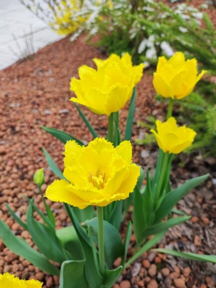 Тюльпаны отцветают до наступления календарного лета. Остающаяся зелень имеет низкую декоративность, поэтому высаживать тюльпаны букетными группами лучше всего на 2-3 ряд цветника, чтобы последующие цветущие растения закрывали тюльпановые листья.