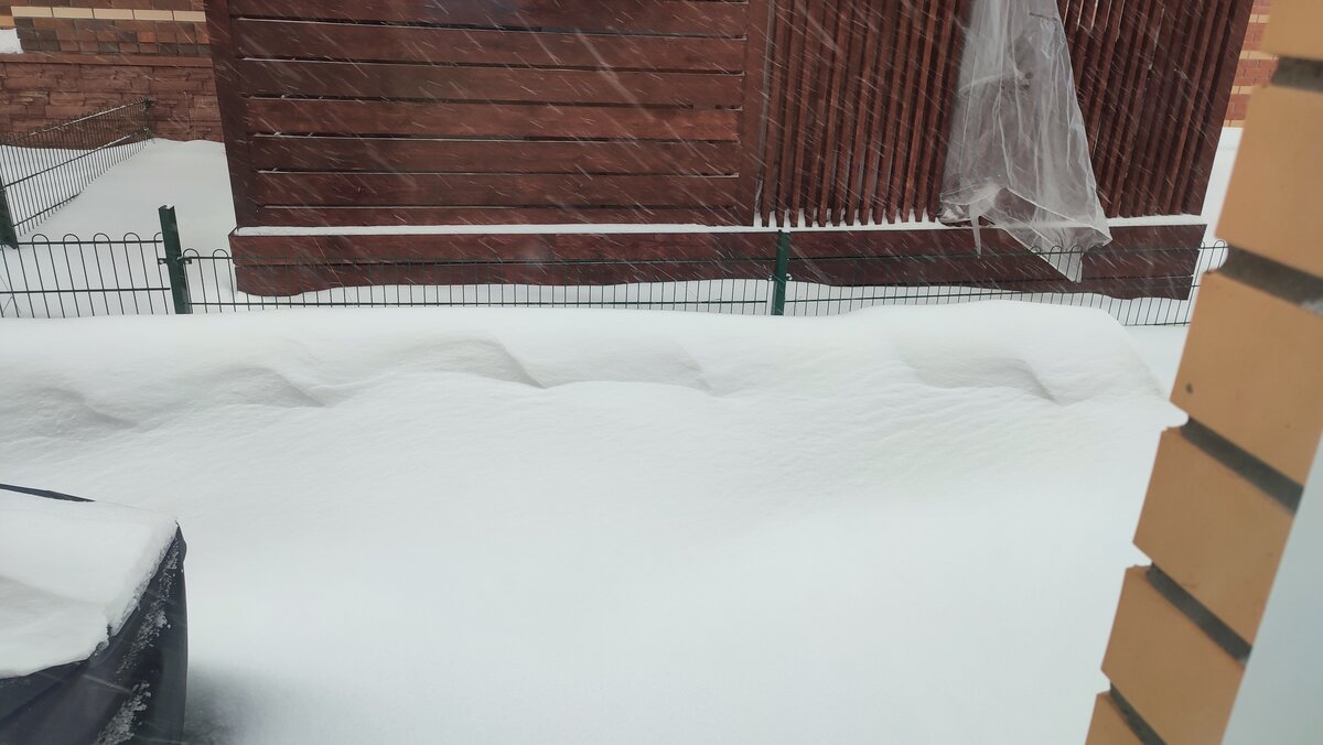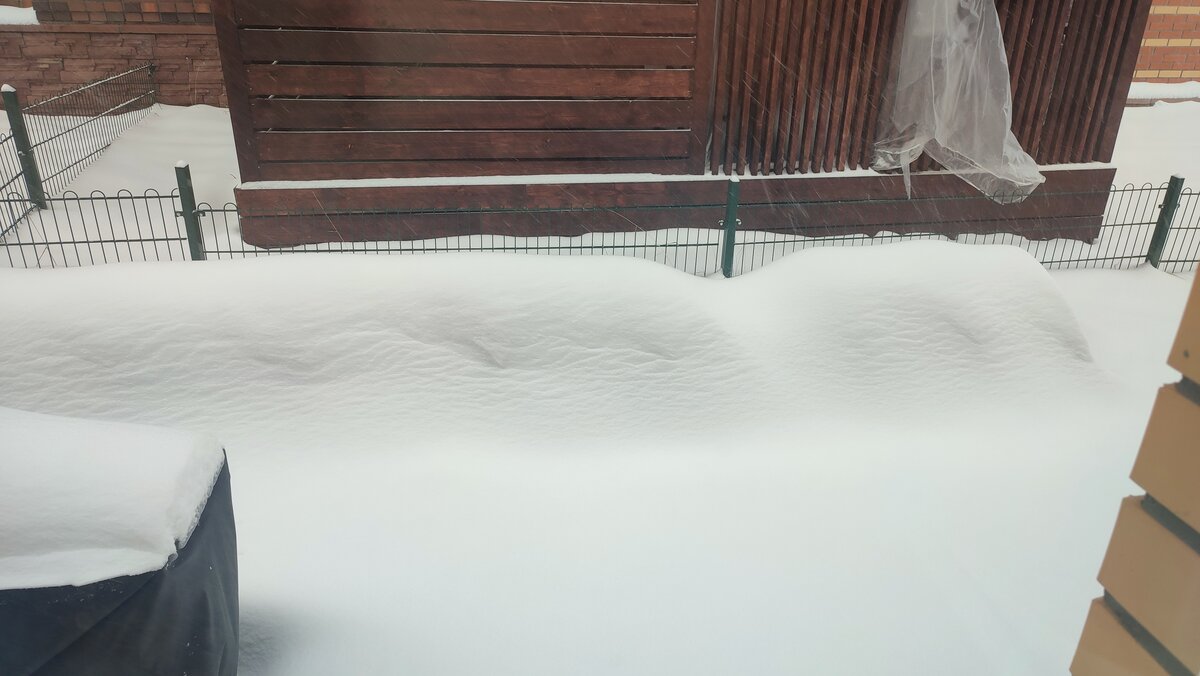 В субботу проехали на дачу. Укрытия с розами снегом прикрыты хорошо, на втором фото справа, а вот гортензии, особенно взрослые стояли совсем голые, накидали на них снега (на первом фото сугробов) . Но поможет ли, уже несколько дней они морозились...