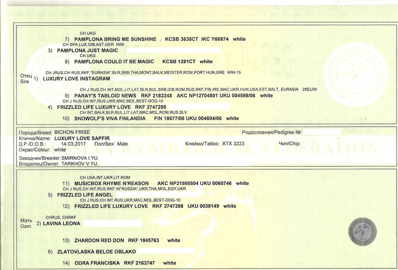 4. Право на обследование пометов имеют лица (инструкторы), имеющие зоотехническое или кинологическое образование и/или имеющие звание судьи по соответствующим породам. Заводчик обязан предоставить инструктору возможность контроля за пометом, сукой, условиями выращивания.