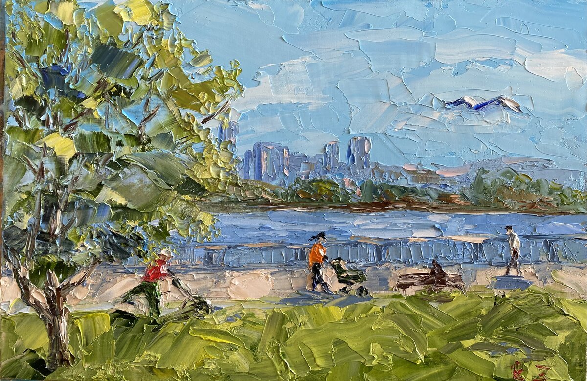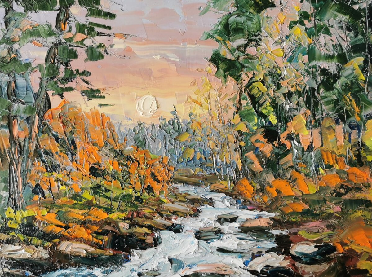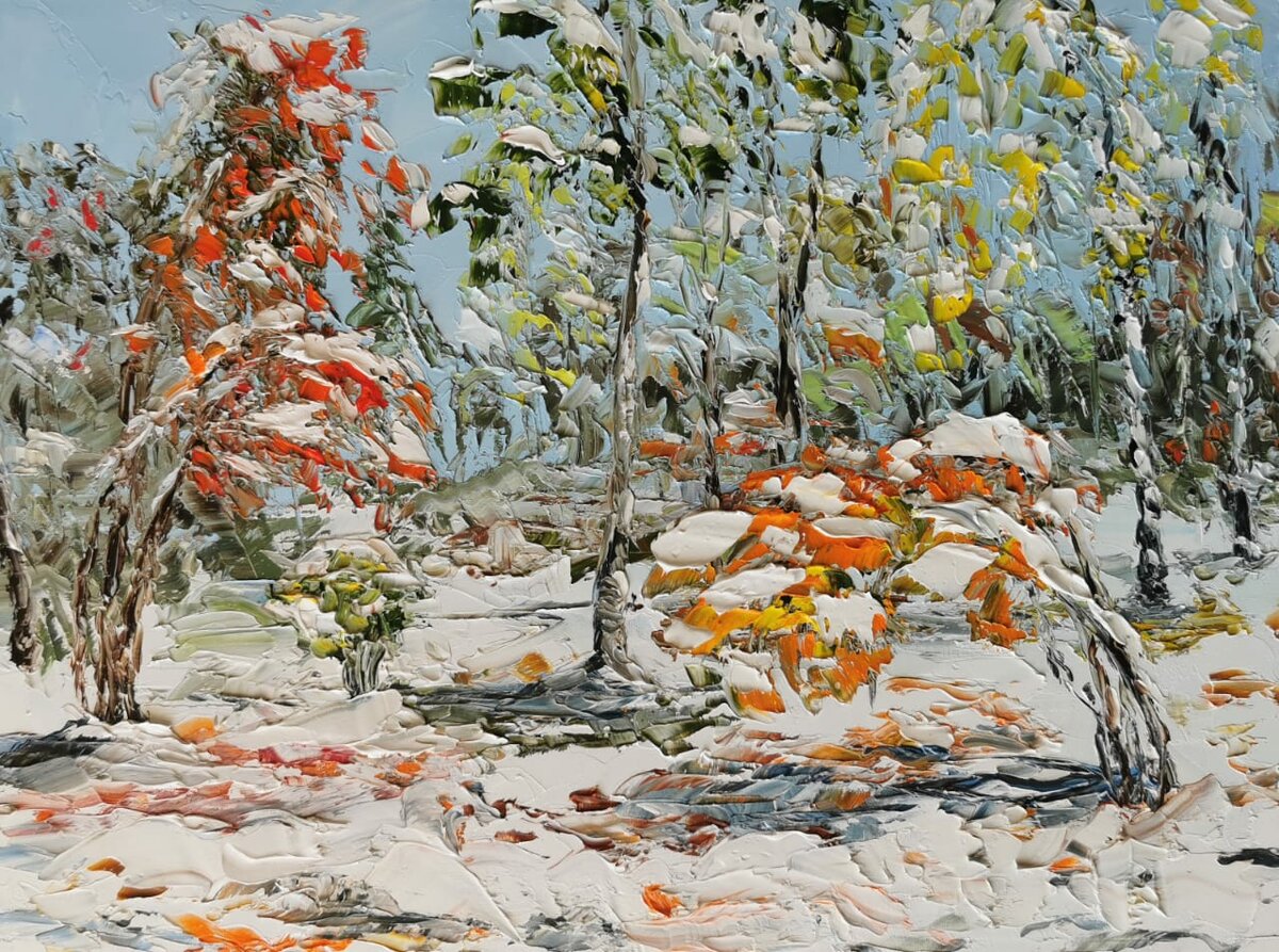 Сегодняшняя работа. К слову сказать, начала совершенно с другой картины, 2 раза соскребала всё с холста и начинала по-новой. Хотела уже всё бросить и домой пойти.