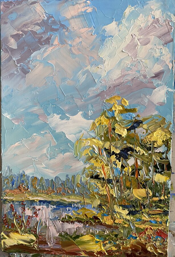 этюд без референса , интересен, сразу видно, что тебе лета хочется! Мне очень нравится, как получилась береза справа, самая крайнаяя, так легко!