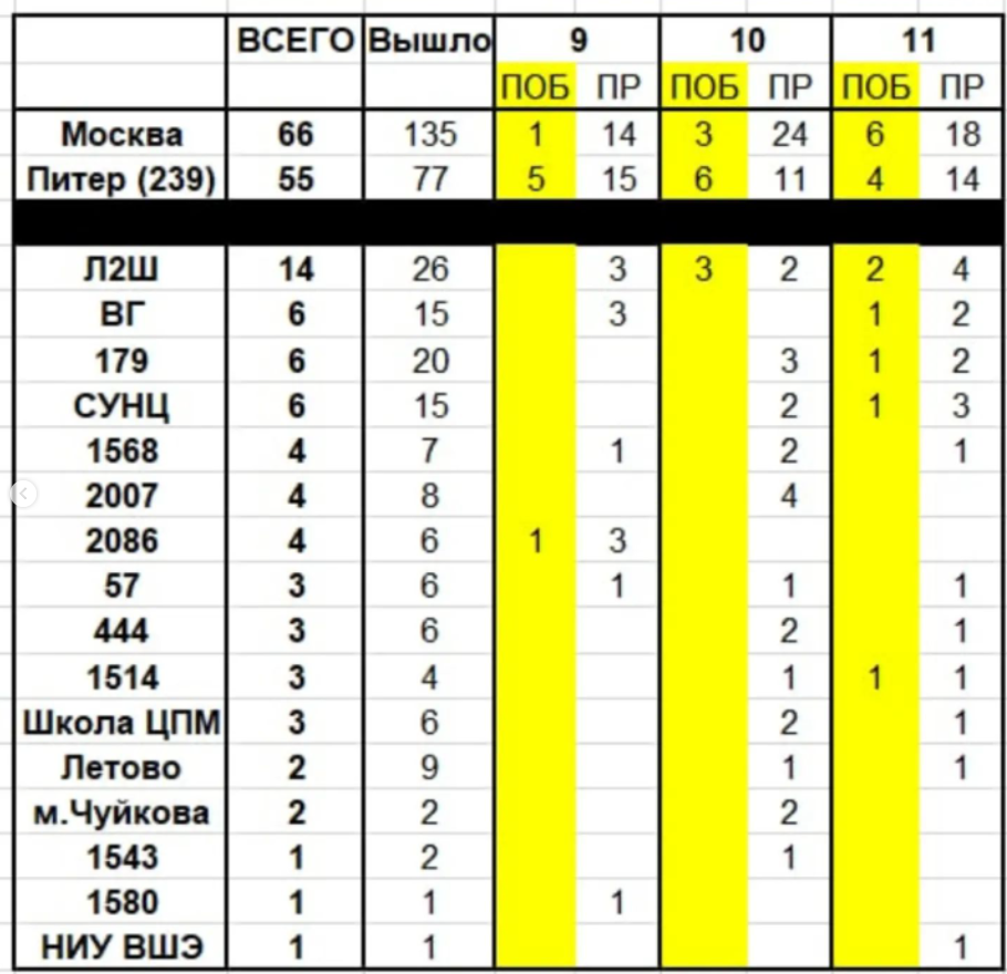 да это такой скандал, что первые места у питерцев, что московские мамы, которые привыкли, что что по всем предметам у них больше половины дипломов, ищут теории заговора. При том, что сильнейшие питерские 9-классники писали за 11 кл.