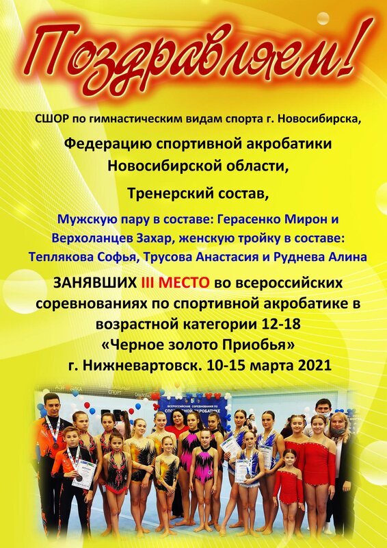 Всероссийские соревнования по спортивной акробатике "Черное золото Приобья" 5-9 марта 2020 г.Нижневартовск