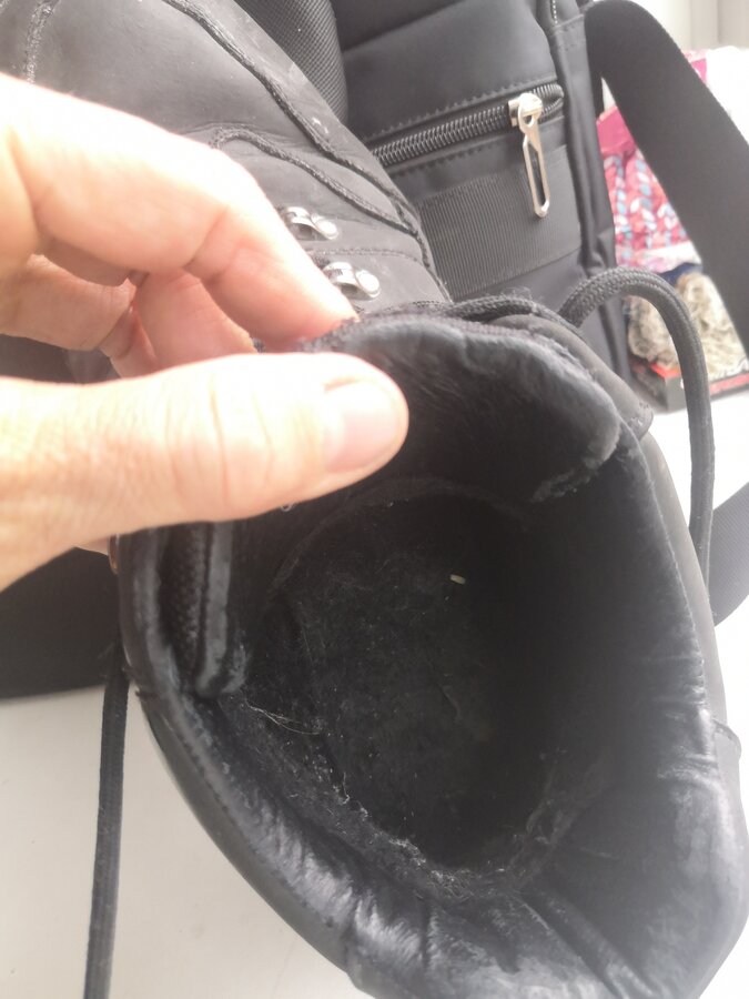 ботинки зимние 45 размер, 29 см по стельке Юничел. Муж сам подклеил, но клей видно. Но сделал на совесть. На 3 фото видно следы клея.