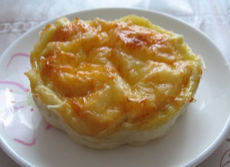 2. Поставила в духовку на 180 град минут на 15-20, затем достала, получились такие невысокие полулепешки/полукорзинки.