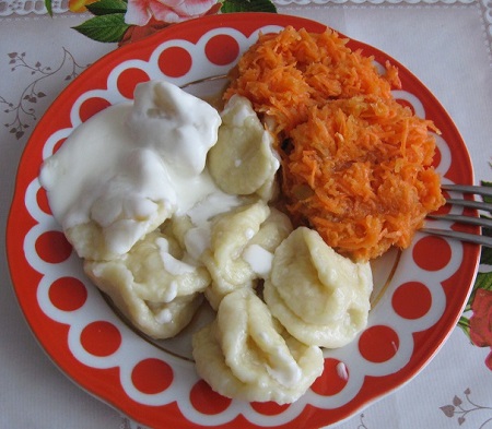 К сожалению, мне этого ничего нельзя, поэтому у меня к галушкам сметана и мелко натертая морковь/огурец с растительным маслом. Все равно вкусно!