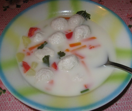 9. Пока галушки лепила, вода закипела. Галушки опустила в кипящую воду, осторожно перемешала обратной стороной ложки (можно плоской лопаточкой), как всплыли - дала провариться минут 5 и вытащила шумовкой в тарелку.