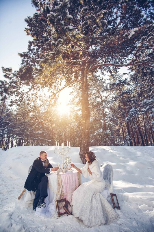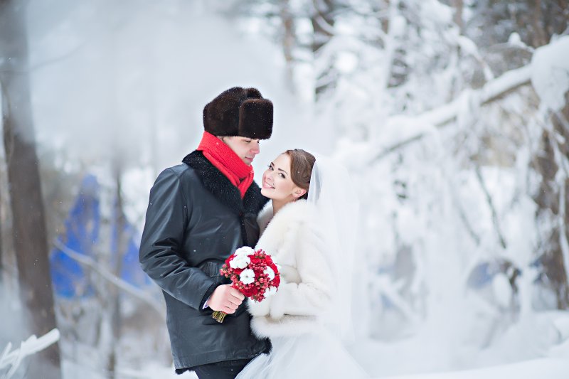 Зима- замечательное время года для свадьбы! Зимой получаются сказочные, волшебные фотографии – заснеженные деревья, хлопья снега валящего с неба или наоборот кристально чистое, бездонное голубое морозное небо.