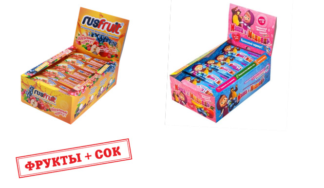 • Специальные батончики для детей с 3-х лет с героями мультсериала «Маша и Медведь» (черника, яблоко-банан).