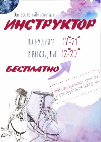 Каток работает в пятницу с 13:00 до 21:00, субб, воскр — с 10:00 до 21:00.