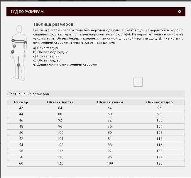 Размеры 42 44 46 48 50
