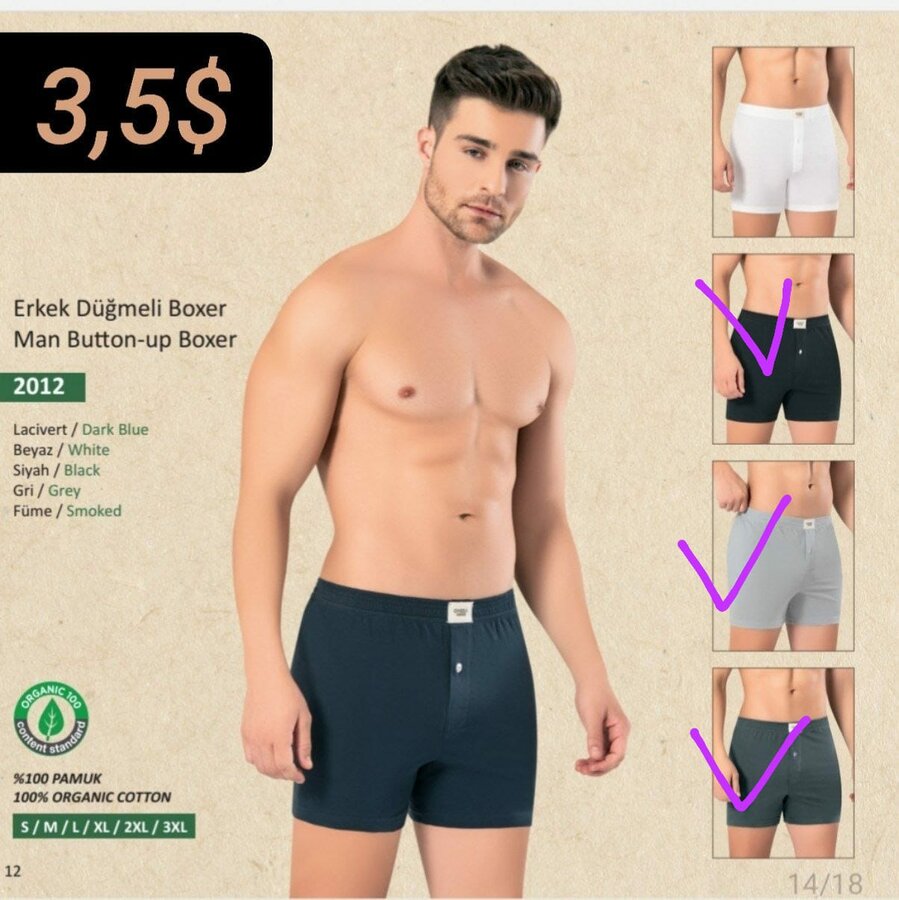 запиши на 3 шт разных темных боксеров ххл и 3 шт разных л, желательно темные с рисунком, можно синих, серых оттенков.