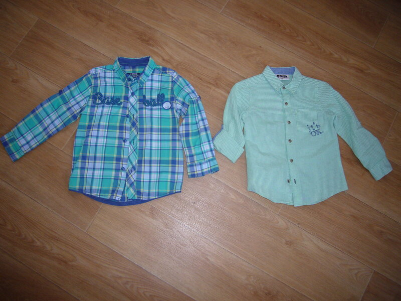 Рубашки в отличном состоянии, в клетку фирмы Вайкики размер 92-98. но большемерит, можно носить с 98 до 106см. Зеленая в полоску фирмы Акула 110 размер. Рукава трансформеры. Цена за каждую 300р.