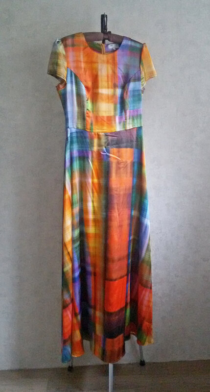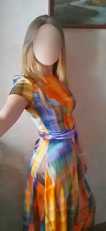 От линии под грудью длина подола 115см., на рост 172 закрывает щиколотку.
