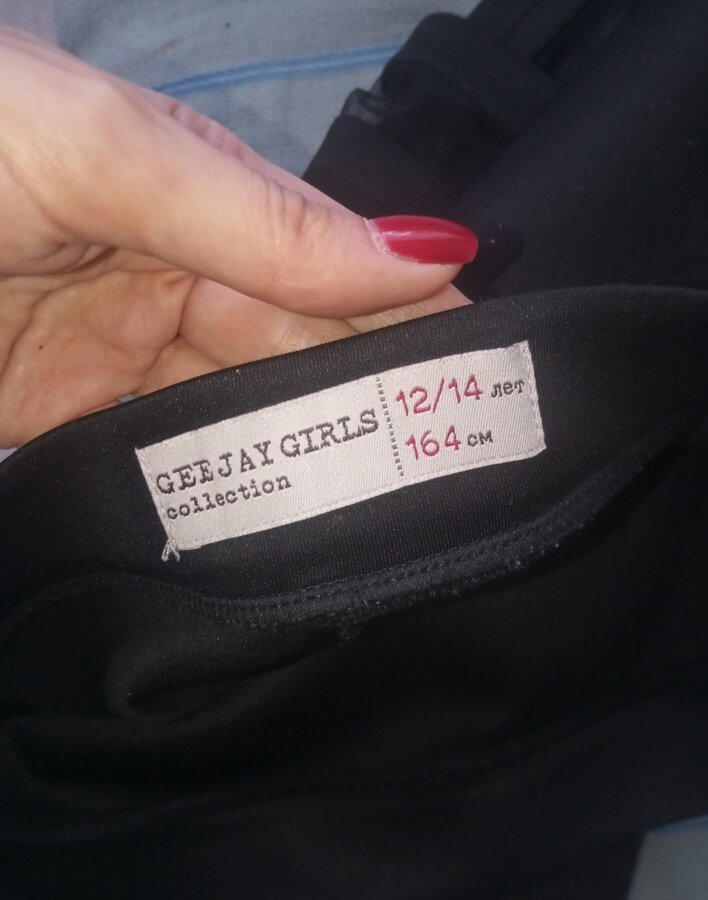 3. Юбка черная трикотажная, возраст 12-14 лет, рост написан 164, но скорее 140-158. Состояние идеальное, не носили