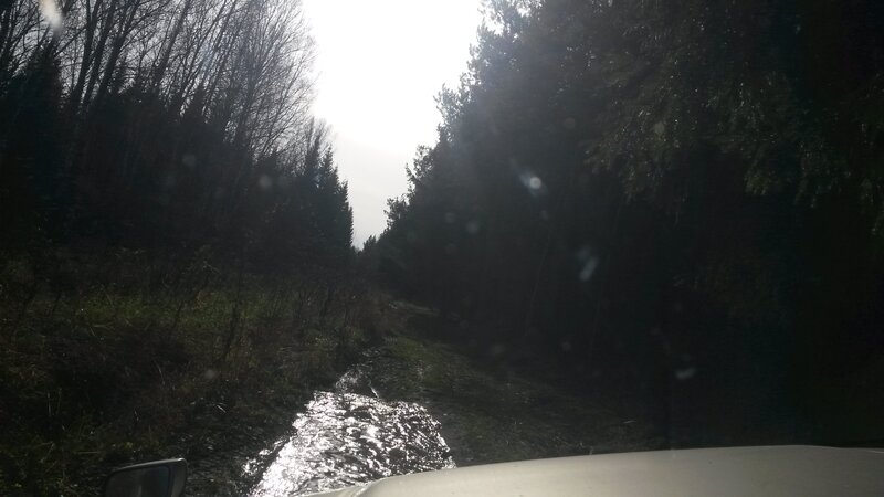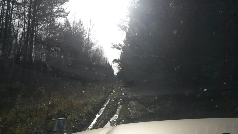 В Кусково всего 2 улицы – Нагорная и Речная. Проехали по Нагорной через деревню, оказались на опушке, с которой в лес уходили 2 дороги. Поехали по правой как более наезженной. Уехали недалеко. Навигатор обещал дорогу с твердым покрытием, но покрытие оказалось жидким.