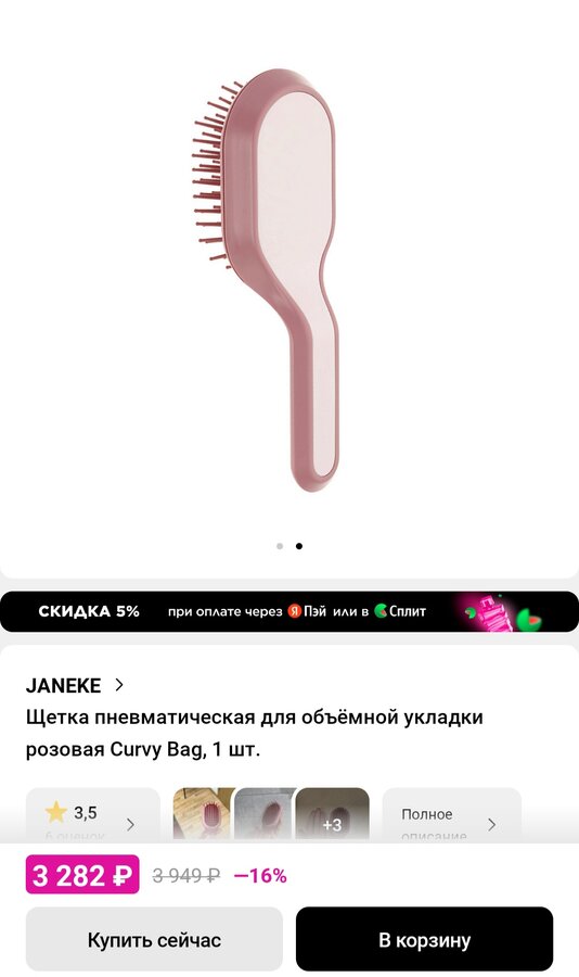 Итальянская расчёска для сухих и мокрых волос, дорожный формат