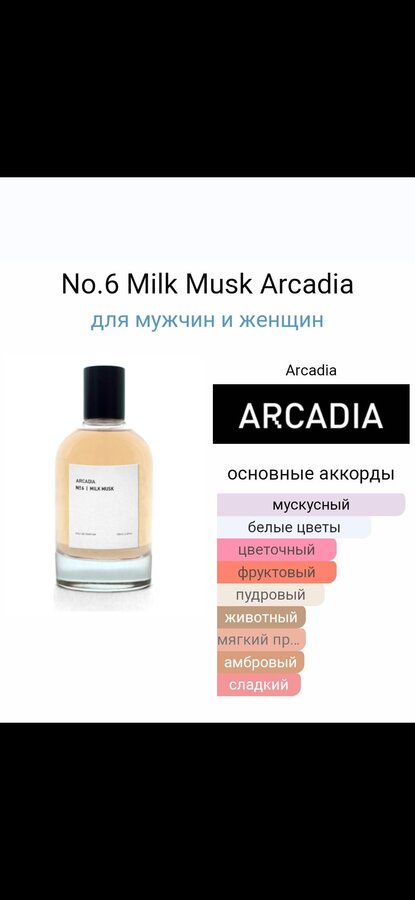 Девочки ,флакон ушёл .Распива по No.6 Milk Musk Arcadia не будит.Эля долго не отвечала,пока больше ни где не нашла этого парфюма по хорошей цене.