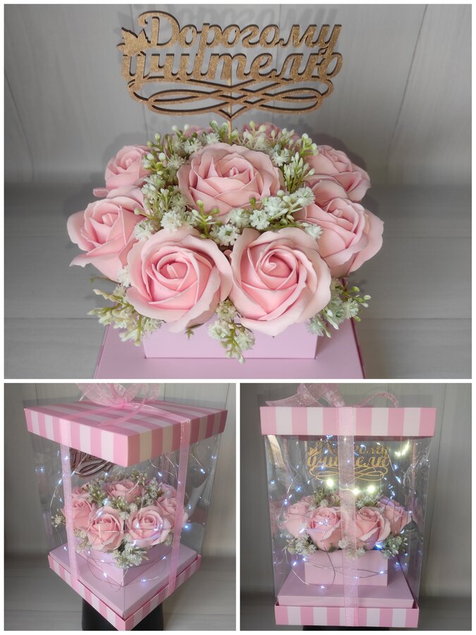 - Пенобоксы, 4шт: спасибо за ваш труд (розовый, голубой), учителю, 1 сентября (красный без колокольчика)