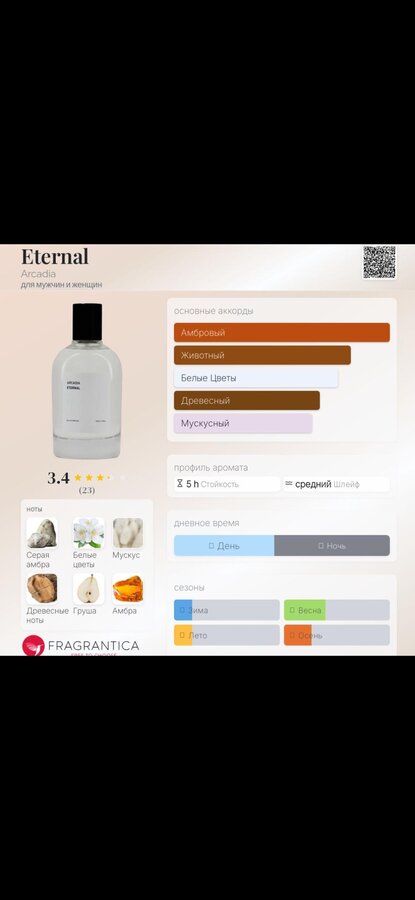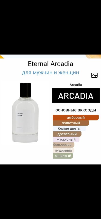 Arcadia Eternal — волнующий и многогранный древесно-фруктовый унисекс-парфюм с мягкими восточными полутонами, выпущенный в 2022 году арабским нишевым парфюмерным домом Arcadia.