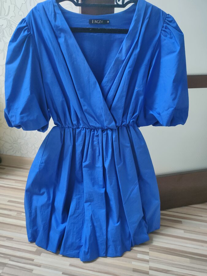 3) новое нарядное яркое платье! Яркий синий цвет! Низ и рукава на резинке, обьемные! Р.44-46, 1500 руб.