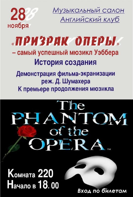28 ноября – «Phantom of the Opera» - композитор Э.Л.Уэббер